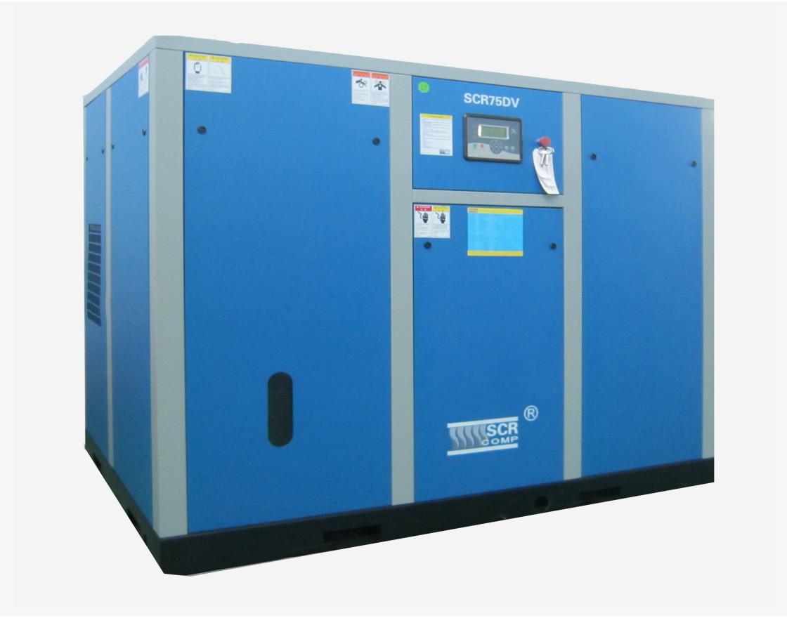 Đầu nén máy SCR sử dụng loại không đối xứng thế hệ mới nhất trục vít xoắn tỷ lệ 5:6. Việc nâng cấp công nghệ làm kín giúp cho hiệu quả sản xuất khí cao 5%-10%, đường kính trục vít lớn, tốc độ quay thấp đảm bảo độ ồn đầu nén thấp và tuổi thọ cao.